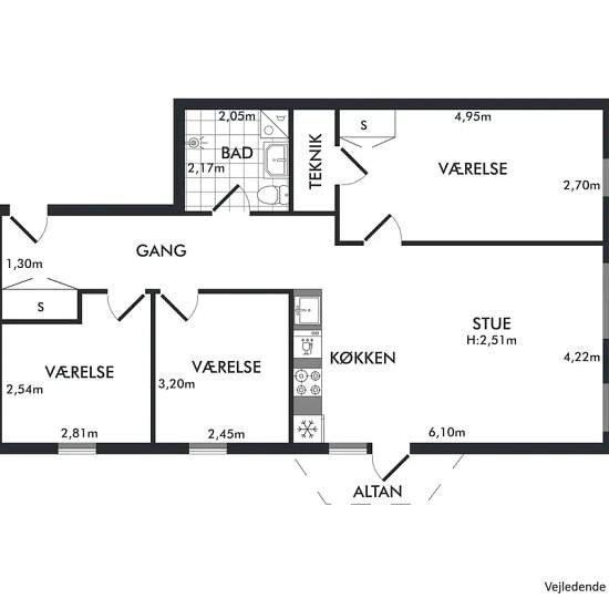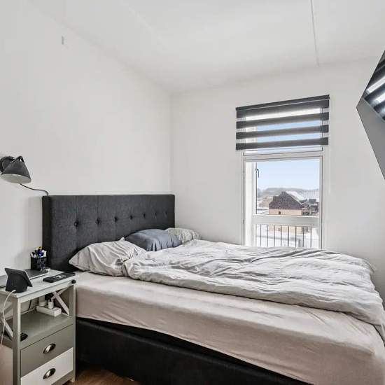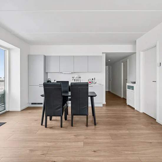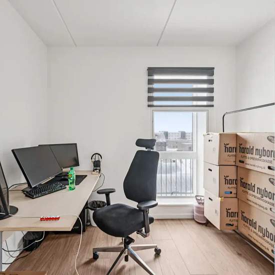 The apartment has a very good layout with three regular rooms and a large living area with an open-plan kitchen. The living room feels spacious and receives a lovely amount of light from the large window sections. There is plenty of space for both a dining table and a sofa arrangement, and from the living room there is direct access to the balcony, which offers a pleasant view over the area. The apartment contains three rooms of sensible sizes, which can be used as a bedroom, children's room, office or guest room — depending on needs. The...