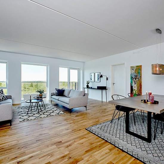 On Else Alfelts Vej you will find this inviting and well-appointed 4-room apartment of a full 103 m² with a lovely private terrace. Here you get a spacious and modern home with plenty of room for family life, everyday calm and cozy moments. When you step into the apartment, you are met by a good and practical entrance hall with space for shoes and outerwear. From here you are led directly into the home's large, open kitchen-dining area and living room – a natural gathering place in the home. The sleek kitchen appears in a white, modern desig...