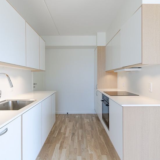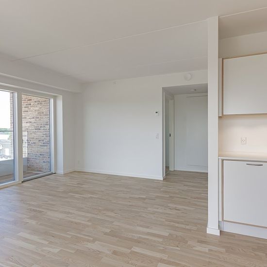 The Lease Newly built 4-room apartment with as many as 2 balconies. With one south-facing and one west-facing balcony, you have ample opportunity to enjoy the view over Frederiksbro Park and the protected area Bøllemosen. The kitchen is from Invita and equipped with appliances from Siemens. Directly adjoining the kitchen is a lovely living room with access to both of the apartment’s balconies. Here you can enjoy a peaceful moment with a view of Frederiksbro and the surrounding areas. All three bedrooms have installed wardrobes, and the apart...