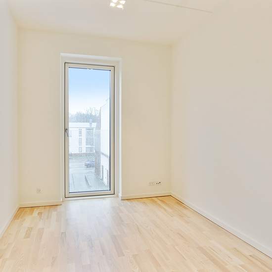 The apartment is divided into two floors. The ground floor appears spacious and inviting and consists of three bedrooms as well as a bathroom. All the rooms are a good size, which provides many different furnishing and use possibilities. The rooms are all fitted with large, well‑placed windows and/or French doors that ensure excellent natural light. The bathroom is bright and spacious with white walls and white wall tiles in the shower, and a light gray stone floor that provides an attractive contrast. The bathroom is equipped with a functi...