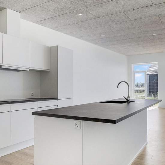 Exceptionally well-located new development with 16 terraced houses in Aabybro. The homes of 112–126 m2 are built in good, solid quality materials – outside as well as inside! Interior: This home is laid out with an entrance hall, utility room, kitchen/dining area and living room with access to a lovely terrace. Two bedrooms, a bathroom with shower and a master bedroom with its own bathroom, also with a shower. Underfloor heating throughout the home. Exterior: Manageable garden with lawn. Paved terraces and a double driveway with space for...