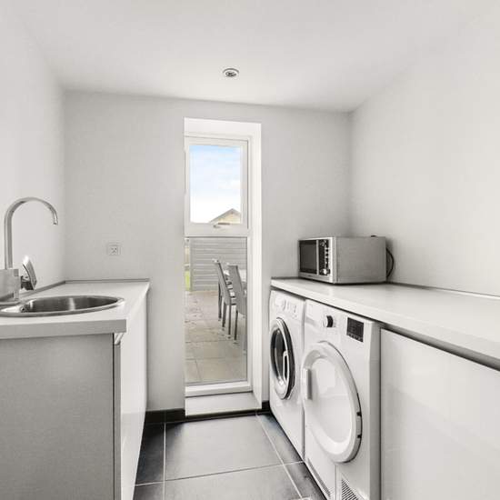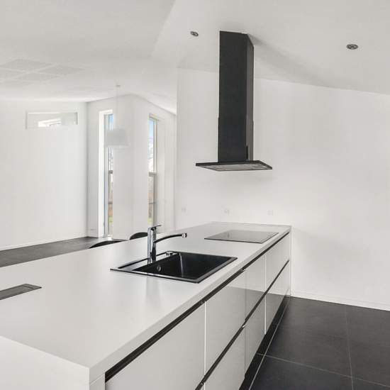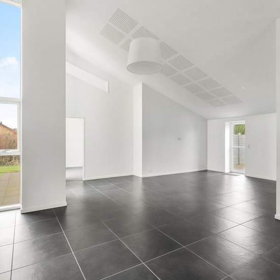 177 m2 single-storey villa * Newly built * entrance * 2 large bathrooms * utility room with washing machine and tumble dryer * 4 bedrooms with wardrobes – 2 with lofts and a master bedroom with en-suite bathroom * modern kitchen/family room in open connection with the living room * living room and family room have a 4-meter vaulted ceiling * there is access to the garden and terraces from both the family room and the living room * 34 m2 garage with aluminum door * windows are approx. 3 meters high * curtains * DKr. 17,000 + utilities Further...