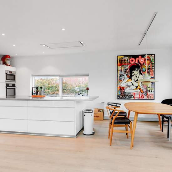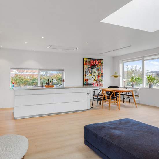 On Sædding Strandvej a 150 m2 newly renovated and well-maintained two-storey villa is offered: sea view directly over the harbour entrance; entrance hall with wardrobe space; 4 bedrooms with closets — the master bedroom has its own walk-in closet; 2 bathrooms; utility room with washing machine and dryer; kitchen/dining area open to the living room; skylights; from the living room there is access to a 20 m2 terrace; enclosed garden. DKK 15,800 + utilities Further information