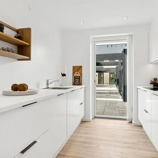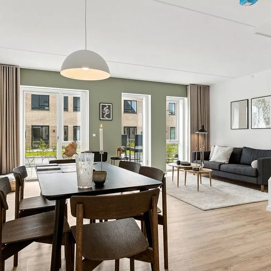 Welcome to this terraced house where light and modern comfort meet the charming village atmosphere in Gistrup. A move-in ready home with a pleasant atmosphere that invites life and togetherness. The property offers 115 well-utilized square meters spread over two floors. The ground floor serves as the home's natural gathering point with an inviting open-plan kitchen and dining area and a living room that opens onto the private tiled terrace. The large windows create a pleasant influx of light, while the sleek kitchen is equipped with built-i...