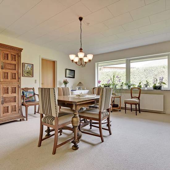 About the Home H.P. Sørensens Vej | 3 Bedrooms | Unfurnished/Furnished | Garden At H.P. Sørensens Vej in Gram you will find a spacious and inviting villa of 166 m² that combines classic charm with modern conveniences. The house was built in 1972 with an extension from 1980 and features a solid brick façade, which ensures both durability and low maintenance. The floor plan offers several well-arranged living rooms and bedrooms, providing ample space for both family and work life, and the bright rooms create a pleasant atmosphere throughou...