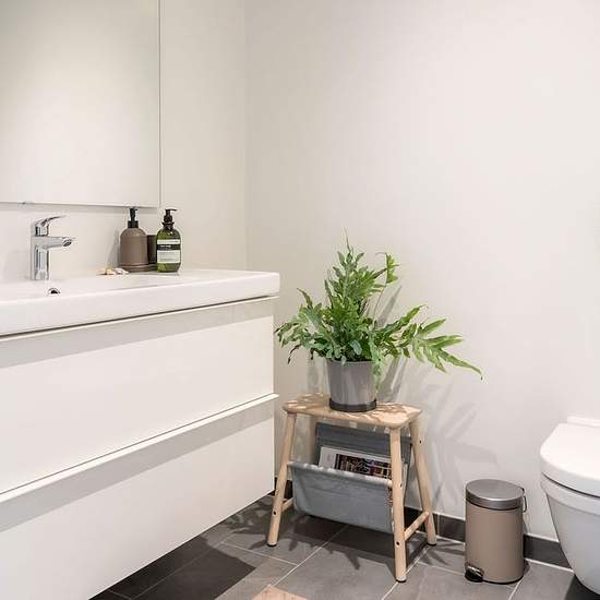 Welcome into the practical entrance hall, from which you enter the kitchen-family room with space for a dining table. Continue into your separate living room with plenty of space for a corner sofa and open the door out to your own south-facing garden with a wooden terrace, lawn and beech hedge. You get a guest toilet on the ground floor and a bathroom with a washer-dryer stack on the first floor, where you also have 3 spacious bedrooms (the large one with a wall of built-in wardrobes). Bright and inviting home with large windows and glass do...