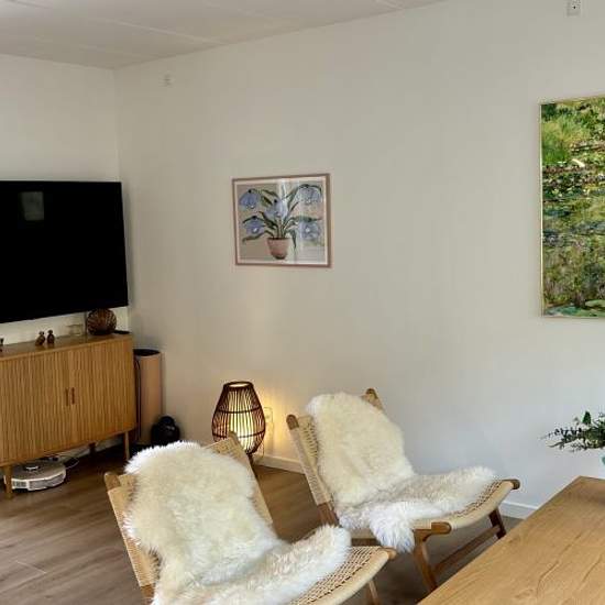 Nu har du muligheden for at leje et nyere og velindrettet rækkehus i attraktive Højbjerg, hvor du bor tæt på grønne områder, sportshal, skole og offentlig transport. I stueplan findes der en god entre, stort køkkenalrum med plads til både spisebord og sofa og herudover et badeværelse. Fra stuen er der direkte udgang til egen terrasse med lille have. Køkkenet er med alt i hårde hvidevare og på badeværelset er der både vaskemaskine og tørretumbler. På første salen er der fordelingsgang og tre gode værelser, to af dem indrettet med skabe. Der ...
