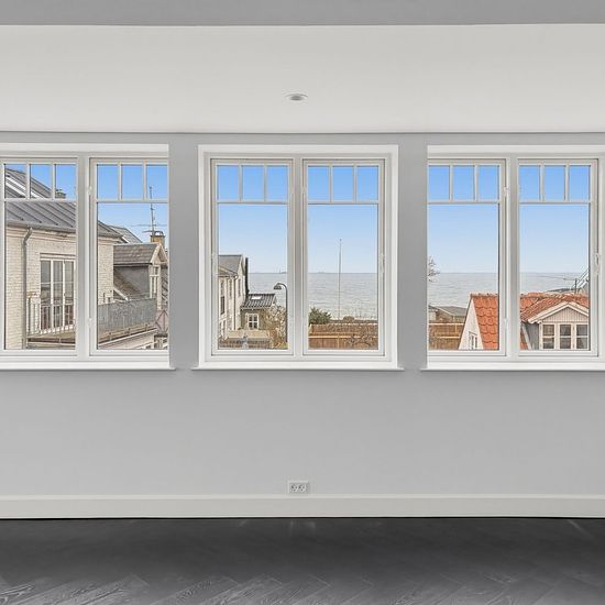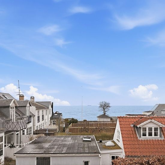 På Taarbæk Strandvej, med Øresund lige uden for døren og den charmerende havn tæt på, udbydes denne bolig med en attraktiv beliggenhed i det gamle fiskerleje. Her får du en rolig og naturskøn hverdag med kort afstand til både Klampenborg og København. I stueetagen findes en rummelig dagligstue med udgang til en stor terrasse, hvor udelivet naturligt bliver en del af hverdagen. Herudover rummer etagen to værelser samt to badeværelser. På førstesalen ligger boligens opholdsrum med køkken og stue i åben forbindelse. De store vinduespartier si...
