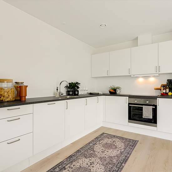 Information about the building and the area 4-room house in Køge The home Welcome to Strandroseparken in Køge, a modern residential area with a focus on quality, functionality and everyday comfort. The spacious 4-room terraced houses are ideal for families who want plenty of space in peaceful surroundings. The homes have a sleek kitchen with all major appliances and a practical utility room with a stacked washer and dryer. The open plan between the kitchen and living room creates a bright and inviting living area where the family can gather...