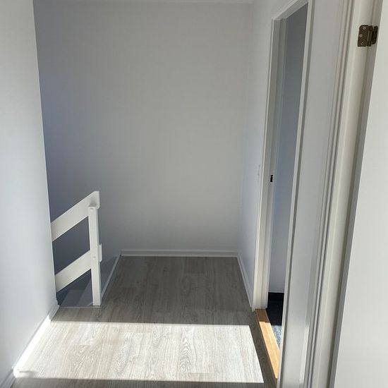 Lovely 4-room terraced house in two storeys of 108 m². There is a separate sleeping area on the first floor and a kitchen, living room and utility room on the ground floor. The terraced house has two small terraces and a large communal garden/green area. Located in a child-friendly neighbourhood close to shopping facilities, school, etc. Subscribed to the antenna association with the option to connect to broadband. Utility consumption is billed directly to the supplier.