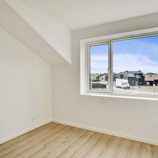 Modern, bright and tasteful terraced house in Lejre Degnejorden – a modern village with community at its core. New construction is rising from the ground in Lejre. The landscape between the housing clusters at Degnejorden is designed as a natural area with varied planting in the form of different trees and shrubs on a base of meadow grasses and herbs. Informal footpaths and small recreational and activity areas will be established through the natural area. 82 rental homes are spread across 3 different housing types on one or two levels. I...