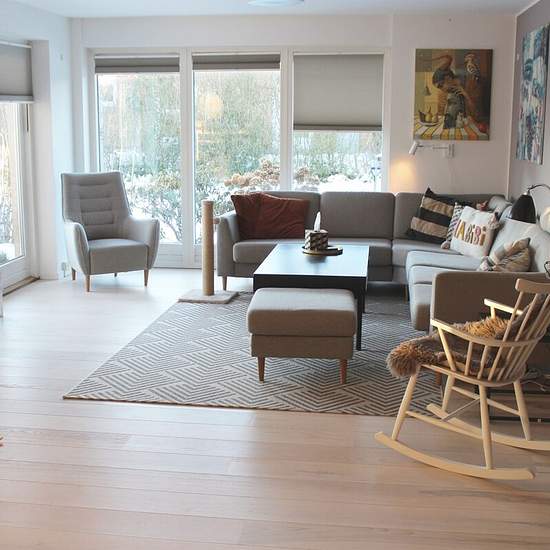 The house is modern and functionally laid out, with a large open-plan kitchen/dining area adjoining the L-shaped living room; together these create a lovely large communal space with room for the whole family. There is an adult wing with a master bedroom at one end of the house — it features both a walk-in closet and an en-suite bathroom with a shower. On the other side of the house is the children's wing, with two good bedrooms. The home also includes an entrance hall with an adjoining practical utility room and an additional bathroom with ...