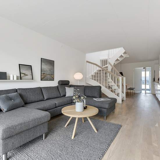 Stort og flot enderækkehus i Malling Dette rækkehus fra 2019 er beliggende i den nye del af Malling og tilbyder et lyst og rummeligt fireværelses hjem, hvor der er lagt vægt på moderne og vedligeholdelsesvenlige materialer. På første sal findes tre rummelige værelser med indbyggede skabe, mens stueetagen rummer et stort køkkenalrum, som er udstyret med køle-/fryseskab, keramisk kogezone, indbygningsovn, emhætte og opvaskemaskine. Rækkehuset har desuden to badeværelser, hvoraf der er mulighed for at installere egen vaskemaskine og tørretumbl...