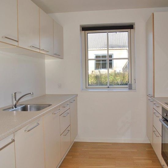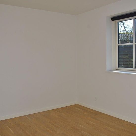 4-room terraced house with an attractive location in a quiet neighborhood. The house offers an entrance hall, living room with wooden floors and large glass section with access to a large terrace, as well as an open kitchen with all appliances. Bedroom with good built-in wardrobes and two nice rooms with beautiful wooden floors. Bathroom with shower, washing machine and well-maintained tiles. Private garden and terrace as well as parking options available with the rental.