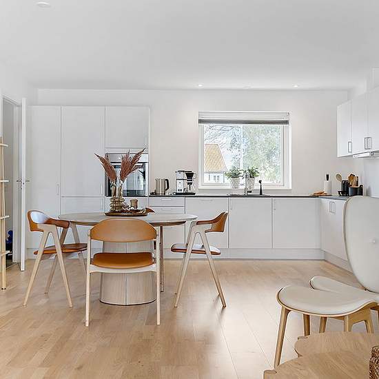 Nu udbydes vores 4 værelses rækkehus på 105 m2. Her mødes du af et godt bryggers med skabsplads, plads til vaskesøjle og teknikrum. Herfra adgang til boligens ene af to badeværelser. God plads, flotte grå klinker og stor bruseniche. Fra bryggers/entré er adgang til køkken alrum og stue. Køkken er HTH med hvidevarer inkluderet fra anerkendt mærke. Stuen er stor og rummelig, med udgang til egen terrasse og have mod syd/vest med sol hele dagen. Her er der også depotrum. Fra køkken alrum og stue er der adgang til boligens 3 gode værelser. Sovev...