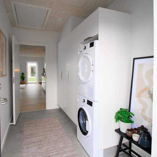 Velkommen hjem til et lyst og indbydende rækkehus. Her bor du midt smukke Astrid Lindgrens kvarter tæt på alle hverdagens bekvemmeligheder, børnehave, indkøbsmuligheder, offentlig transport og nem adgang til motorvej. Et hjem med plads til livet Boligen byder på et dejligt og åbent køkken-alrum, hvor køkkenet smelter sammen med stuen i ét stort, lyst rum. Køkkenet er moderne og stilrent med alt i hårde hvidevarer og god plads til både madlavning og samvær. Her kan du samle familie og venner omkring spisebordet og nyde udsigten gennem de sto...