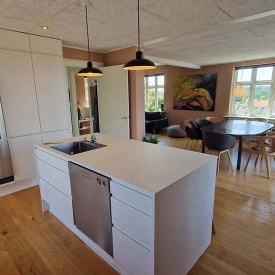We are subletting our lovely house, fully furnished, centrally located in Skanderborg from 1 December 2025 to 31 March 2026. 200 m2 spread over a large kitchen-dining area with an adjoining living room, a large family room, 3 bedrooms on the ground floor, as well as 1 bedroom and an office on the first floor. 2 bathrooms/toilets on the ground floor. Garage with space for one car and direct access to a large utility room with washing machine/dryer. We are looking for a subtenant for the entire period while we are away. Price DKK 15,000/month ...