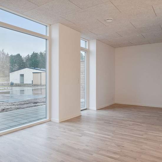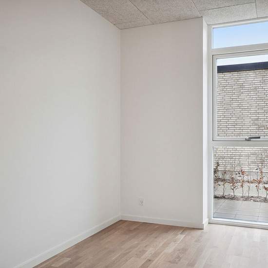 Rækkehusene er i et- eller to-plan. Alle boligerne er indrettet med et køkken-alrum i åben forbindelse med stue og direkte adgang til boligens store terrasse. Rækkehusene har derudover badeværelse og 2 eller 3 værelser. I rækkehusene i to-plan, finder du køkken-alrum og toilet i stuen og tre værelser samt boligens badeværelse på første sal. Hver bolig har en terrasse med flisebelægning, hvorfra der er udsigt til de omkringliggende grønne fællesarealer. De skrånende områder med vild beplantning skaber rolige omgivelser og et minimum af vedli...