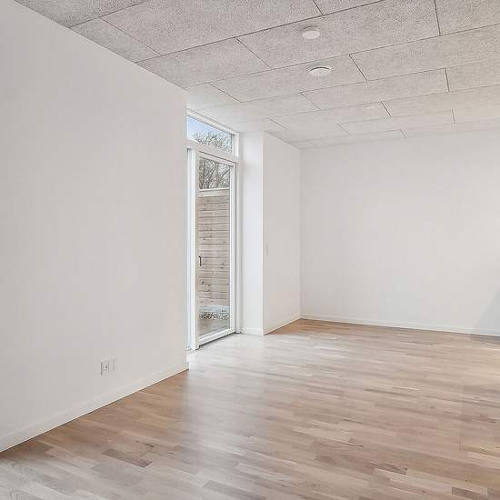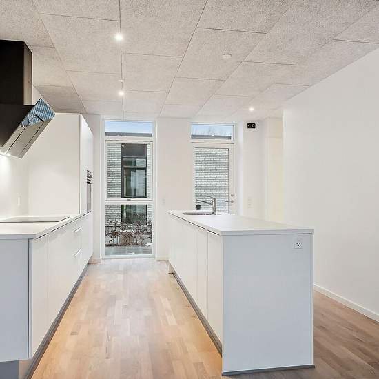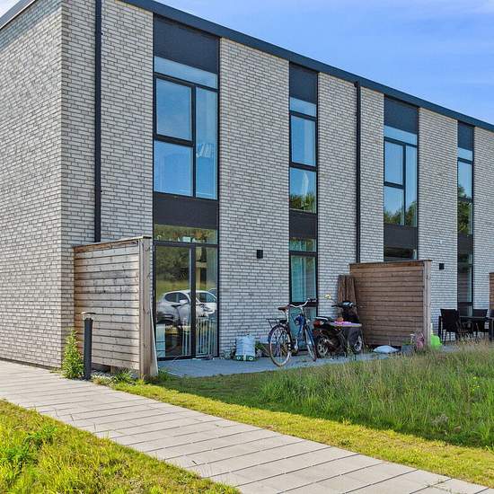 Rækkehusene er i et- eller to-plan. Alle boligerne er indrettet med et køkken-alrum i åben forbindelse med stue og direkte adgang til boligens store terrasse. Rækkehusene har derudover badeværelse og 2 eller 3 værelser. I rækkehusene i to-plan, finder du køkken-alrum og toilet i stuen og tre værelser samt boligens badeværelse på første sal. Hver bolig har en terrasse med flisebelægning, hvorfra der er udsigt til de omkringliggende grønne fællesarealer. De skrånende områder med vild beplantning skaber rolige omgivelser og et minimum af vedli...