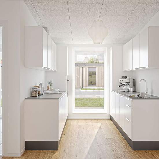 Drømmer du om et nyt hjem hvor der er plads til hele familien? Og hvor alt det I skal bruge i hverdagen, er i gåafstand fra døren? Så er det i Skovlunden, Stenlille hvor I sammen kan skabe rammerne for jeres nye hjem . En praktisk velkomst Boligens entre er både flot og praktisk. Gulvet er med gråt gulv i fliselook, så du ikke behøver at bekymre dig om beskidte støvler og tasker der bliver smidt på gulvet. I entreen har du både vaskemaskine, tørretumbler og mulighed for at lave gode opbevaringsløsninger til hele familiens sko og overtøj. ...