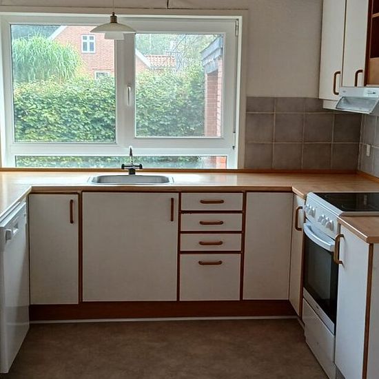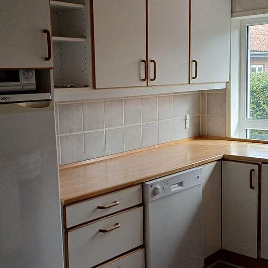 House of 104 m2 + basement of 40 m2 + garage. The house includes an entrance hall, large living room, kitchen with dishwasher and space for a dining table, 2 good bedrooms + a slightly smaller bedroom, as well as a toilet on the ground floor. In the basement, there is a large bathroom with space for a washing machine and a boiler room with a pellet boiler. The house is heated with a pellet boiler, which is located in the basement. Last year, the heating cost was 7000 DKK. The tenant is responsible for heating. Additionally, there is a ga...