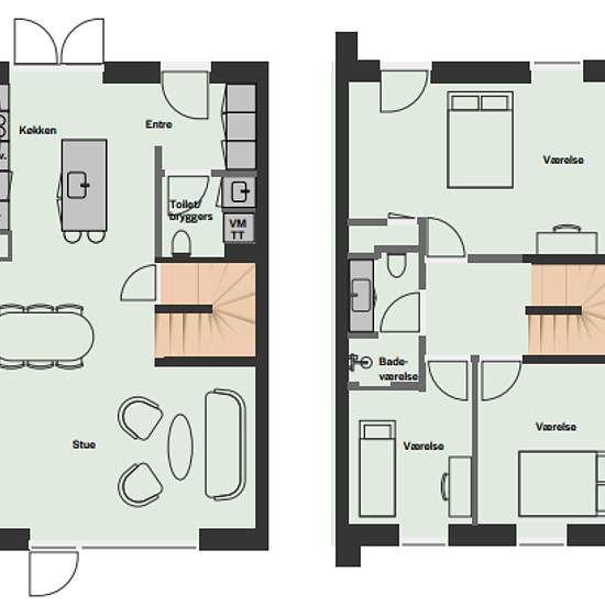 Beskrivelse Dette indbydende 4-værelses rækkehus i to plan rummer 121 kvadratmeter. Fra entreen, der både inkluderer et toilet og indbygget garderobeskab, går du direkte ind i det åbne køkken-alrum, hvor der er plads til hele familien i det stilrene JKE-køkken med hårde hvidevarer fra Siemens. I stuen har du glasdør direkte ud til haven, hvilket giver et smukt lysindfald og skaber en naturlig overgang til haven og den solrige terrasse. Under trappen til 1. sal er der etableret et praktisk opbevaringsrum, der bidrager til en optimal udnytt...