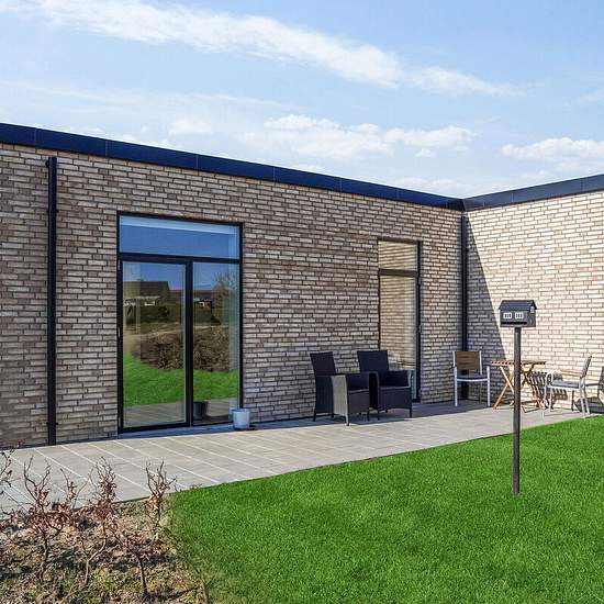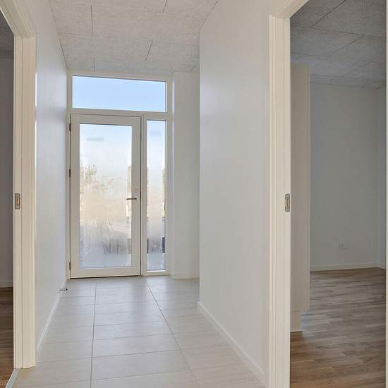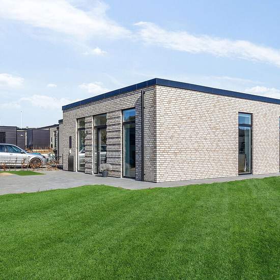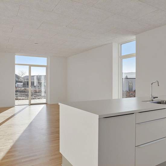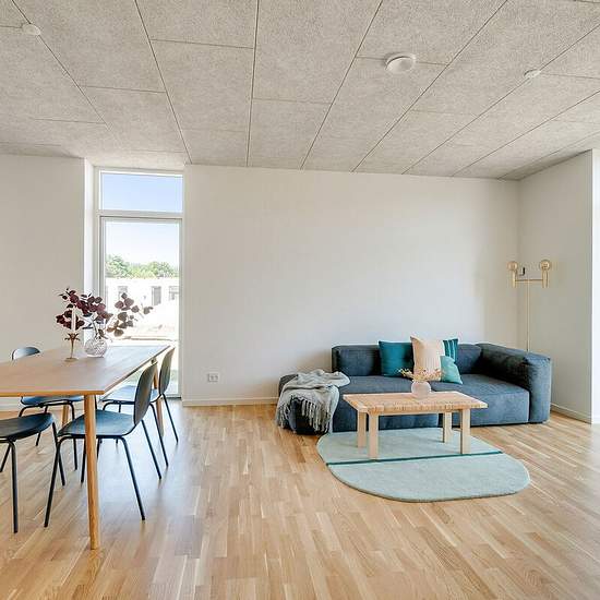 All the terraced houses at Rapsvænget 4–41 are single-storey and measure between 100 and 103 sqm. You step into the home's entrance hall, from which you continue into the spacious kitchen-dining area. Some homes have a large kitchen island that can also function as a dining area. In addition, you get three separate rooms and a good bathroom. Some homes have a utility room; others have the stacked washer and dryer placed in the entrance. There is underfloor heating in all rooms. All homes have a private garden with a lawn, beech hedge, shed ...