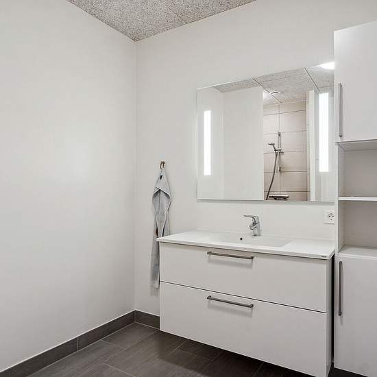 At Kobbelvænget in Vejle we rent 2-, 3-, 4- and 5-room terraced houses on one or two levels. The terraced houses have a terrace area as well as a small paved front garden with a carport. The terraced houses are heated by underfloor heating. Appliances All major appliances are included. Pets Pets are allowed. See our full pet rules here. Parking There is private parking in front of the home. Common areas For all residents there is an outdoor fitness area and a playground for the youngest residents. Read more about the property The photo...