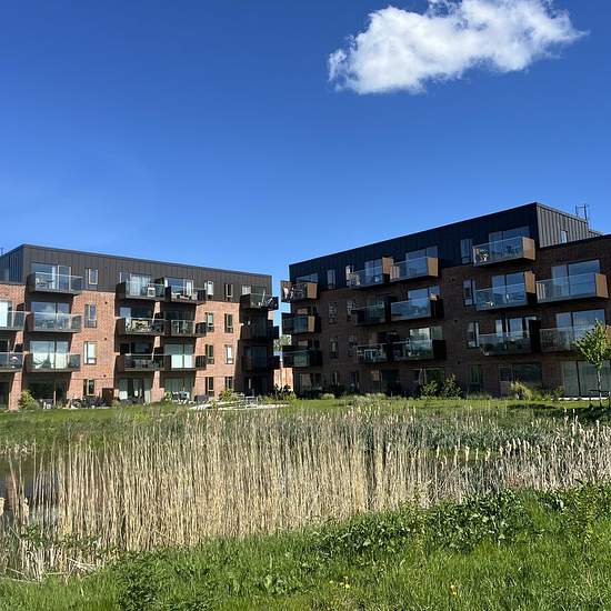 Delicious new apartments in Sporbyen Randers! Our 4-room apartments: Pets are allowed based on individual assessment FREE parking There is an elevator in the building and all apartments have a lovely large balcony. The apartment is located in the exciting new residential area Sporbyen. Here you will find, for example, beautiful new residential buildings, a coffee roastery, and a train carriage that is being converted into a restaurant. Many things are happening in the new district, making it a lovely place to live. In the pictures, you ca...