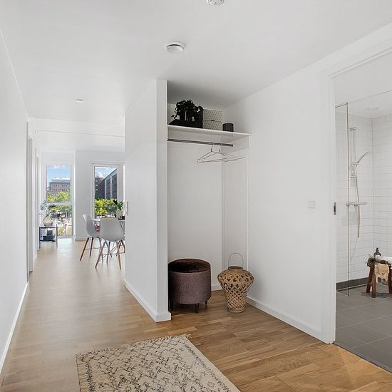 Lejligheden er en rummelig 4-værelses bolig med en god og funktionel planløsning, der egner sig godt til både familier og par med behov for ekstra plads. Boligens naturlige samlingspunkt er det store, åbne køkken-alrum, hvor køkken, spiseplads og stue er integreret i ét sammenhængende opholdsrum. Køkkenet ligger centralt placeret og giver god kontakt til både spisebord og sofaområde, hvilket skaber en social og indbydende atmosfære. Fra stuen er der direkte adgang til en hyggelig altan, som fungerer som en naturlig forlængelse af opholdsrumm...