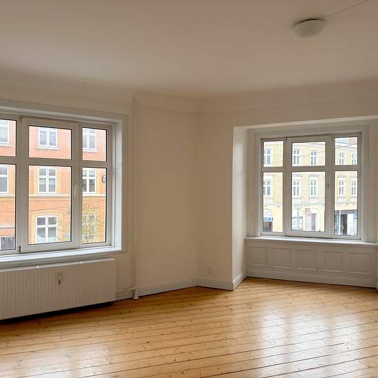Welcome to this beautiful and bright 4-room apartment of 98 m², located on the 1st floor of a characteristic building in the middle of Boulevarden. Here you get a home with lots of charm, plenty of space and an absolutely central location in Aalborg's vibrant city life. The apartment offers four good and spacious rooms, providing flexible furnishing options – perfect for couples, small families or as a shared flat. The large windows create a lovely flow of light, and the well-laid-out floor plan makes the home both functional and inviting. ...