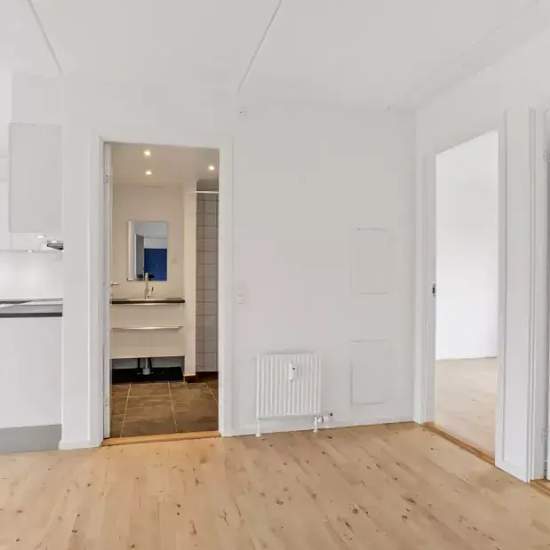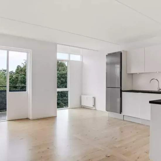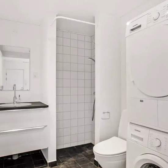 The apartment The apartment is finished in light, timeless materials, with lots of natural light, solid parquet floors and white-painted walls, ceilings and panels. The spacious living room leads to a functional kitchen with good cupboard space, stove, fridge-freezer, extractor hood and dishwasher. The bathroom offers a separate shower cubicle and a washer-dryer column. The bedroom has built-in wardrobes for storage, and there is also an attached 3–4 m² storage room in the basement. It is possible to apply for pet permission in all our renta...
