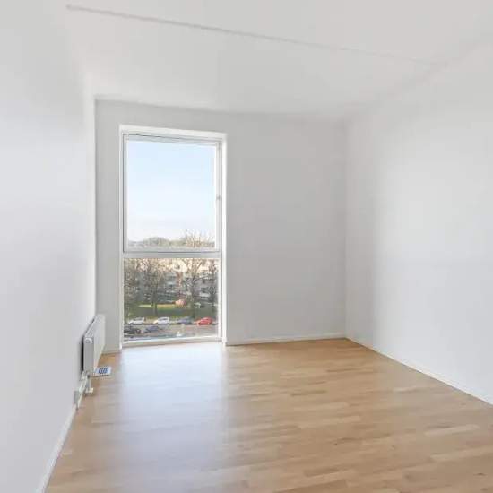 Lejligheden Lejligheden er opført i skandinavisk stil, der får den til at fremstå moderne, lys og indbydende. De store vinduer lukker store mængder dagslys ind og skaber derved en varm atmosfære og et flot spil på det lyse egetræsgulv. Lejlighedens hjerte er et centralt opholdsrum med åbent køkken og spiseplads. Det diskrete, hvide køkken er fra Invita med hårde hvidevarer fra Siemens. På badeværelset er der fliser på gulvet og i brusekabinen. Der er desuden vaskemaskine og tørretumbler fra Siemens. I mastersoveværelset findes indbyggede ska...