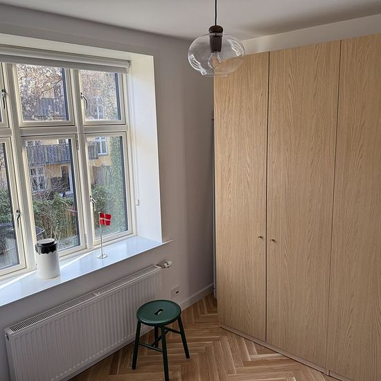 Located on a highly sought-after Frederiksberg C address, in a green and quiet side street off Gammel Kongevej, framed by classic facades and green front gardens, with a classic and village-like atmosphere. The apartment is situated on the 1st floor of a 3-story building with only 3 apartments. Extremely stylishly and functionally arranged, the home features a beautiful open kitchen/dining room with a large dining table, extending from the living room. This is cozily divided into two rooms with French doors and furnished with a sofa area an...