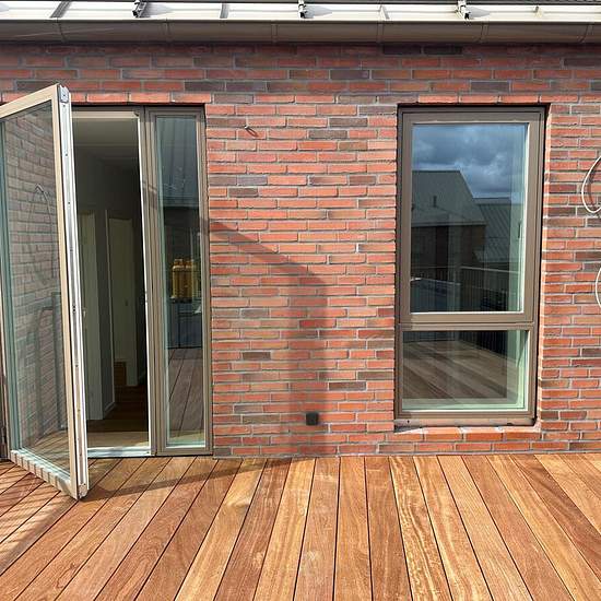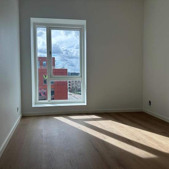 This unique 5-room apartment of 126 m² gross combines modern comfort with plenty of space and a frontline location to Nørresundby’s new district, Stigsborg. With both a south-facing balcony and a private roof terrace, you get sun all day and a very special setting for everyday life. The home includes a large living area with an open Invita kitchen and integrated appliances, four good bedrooms, and a spacious bathroom with a washer/dryer stack. With underfloor heating in all rooms and beautiful wooden floors from Moland, the home is fitted wi...