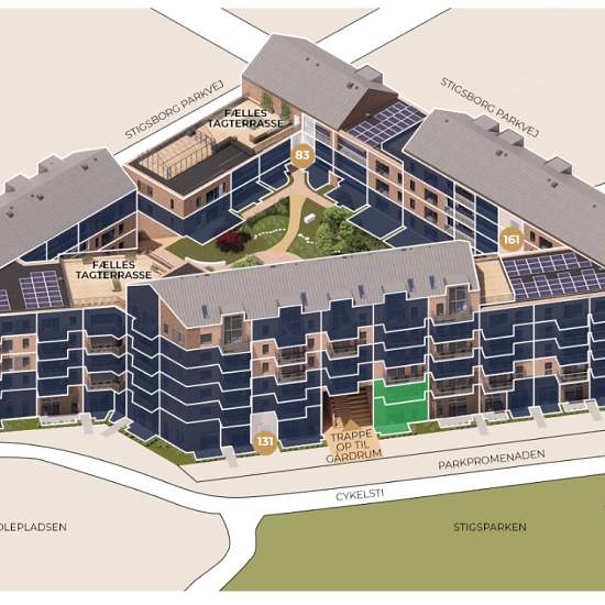 StigsborgHus is designed with many skewed angles, allowing for a wide variety of apartment types. Therefore you can choose from as many as 149 lovely rental apartments, of which only a few are identical. The units are available with 1–5 rooms in sizes from 39–160 m². All apartments have access to a lovely balcony, which is more generously sized than what you typically see. Regardless of which rental apartment you choose, you can look forward to the simple Nordic style, with attention paid to every detail. The apartments are fitted with excl...
