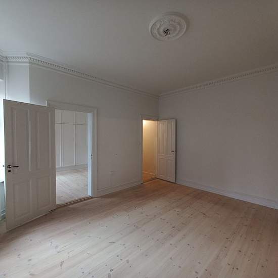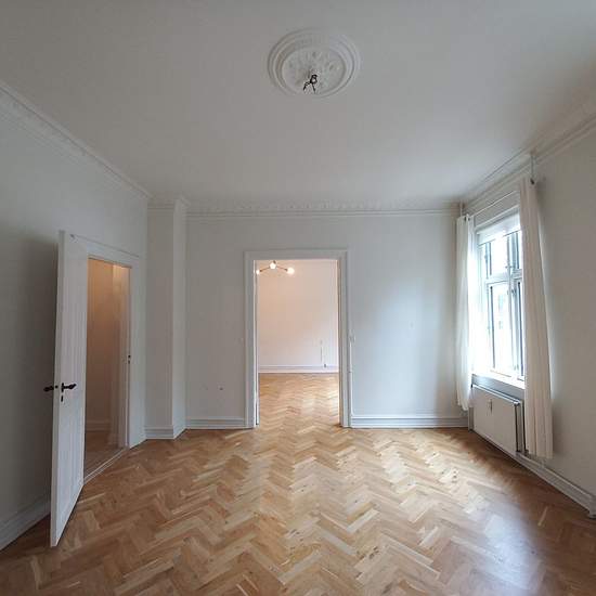 Grand apartment for rent at Odense's absolutely most sought-after address, Hunderupvej. The entire apartment displays stately features, with ceiling mouldings, herringbone parquet, large living rooms and lovely natural light. The apartment is in very good condition and definitely worth a visit. The apartment comprises a total of 3 living rooms, of which 2 can easily be used as bedrooms, 1 bedroom, a newer bathroom, guest toilet, a large kitchen and 1 extra room/chamber. Not rented as a shared apartment, and pets are not allowed. The apartmen...