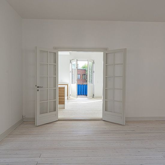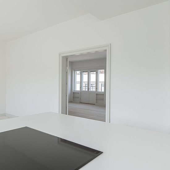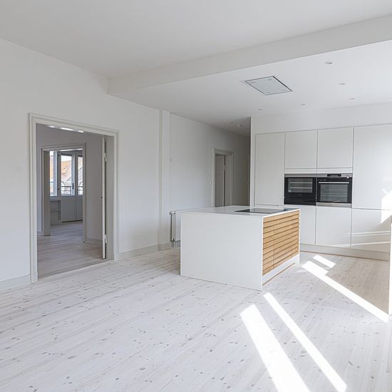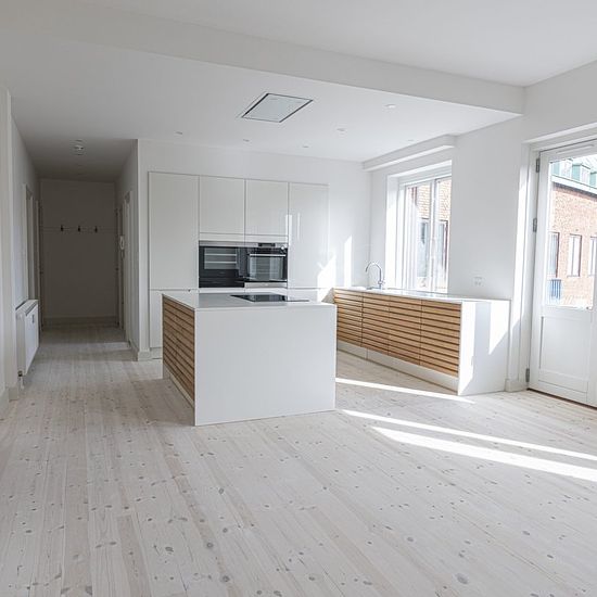 Beautifully renovated 5-room apartment located in the attractive Holsedore in the heart of Odense city center. The apartment is situated in a well-maintained building with an elevator. The apartment has been renovated with a particularly beautiful and stylish kitchen with integrated appliances, including a wine cooler. The kitchen is refurbished with beautiful light lamella wooden doors and a white practical countertop, which gives a sleek appearance in the large eat-in kitchen, which also has access to a balcony. From the apartment's kitc...