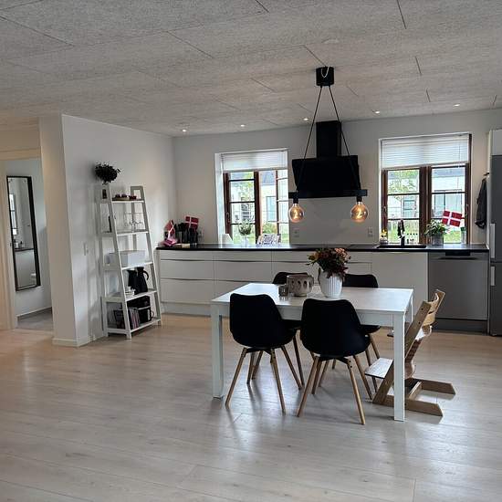 130 m2 townhouse from 2020 2 floors with 4 bedrooms 2 toilets and a bathroom with shower Large open-plan kitchen/dining/living area and living room with access to garden West-facing, enclosed and private garden for the rental unit High-quality material choices including a heat recovery ventilation system, acoustic ceilings, spotlights, etc. Access to attractive enclosed communal areas Shared parking and own storage room 1 km to the light rail stop, Løgten Bytorv, shopping, etc. 1 km to Skødstrup School, sports facilities, etc. This rental c...