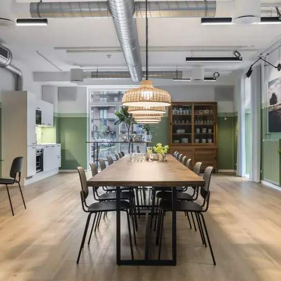 The apartment 5-room apartment with 3 bedrooms, a kitchen/dining area and a living room. You enter the apartment through a spacious entrance hall with wardrobe space and access to all the rooms of the apartment. Between the two larger bedrooms facing the courtyard is a smaller room created as a children's room, which can also be used, among other things, as a home office, play area or hobby room. In addition, the apartment offers a kitchen/dining area with a modern white Invita kitchen with all major appliances, with access to the living roo...