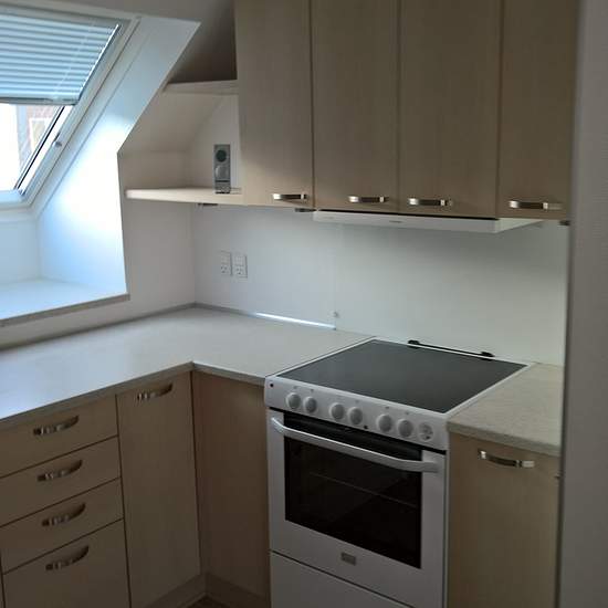 Large, bright and spacious apartment centrally located in Viborg. The apartment features an entrance hall, bathroom, large living room, kitchen, office, two rooms and a bedroom with built-in wardrobes. There are wooden floors in the living room and bedrooms, tiles in the bathroom and vinyl flooring in the kitchen. There is also a private backyard with a double carport.