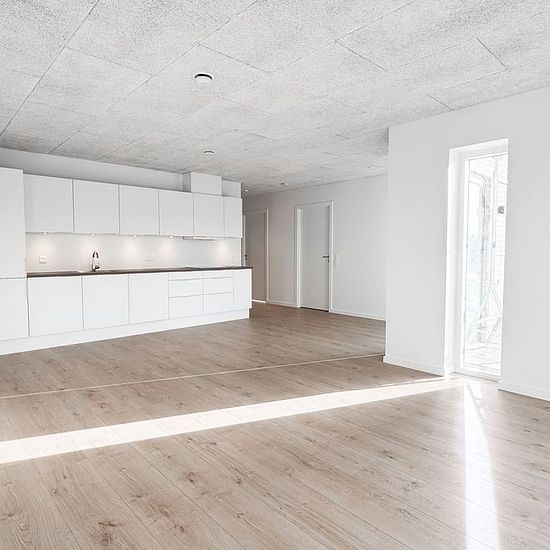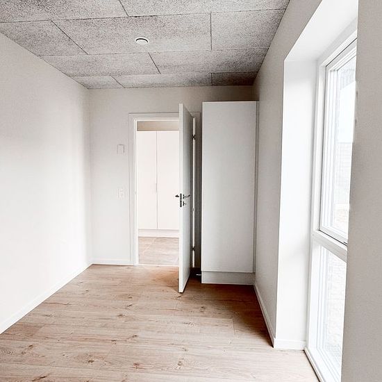 In the attractive Engen area near Billund, you will find 44 bright and modern rental homes with 2-5 rooms. The homes are built with a focus on functionality, bright settings, and quality materials. The homes are spread over two floors with a horizontal boundary, a solution where one home is on the ground floor and one on the first floor. All homes have either a private terrace with a garden (ground floor) or a spacious roof terrace (1st floor). In this townhouse you get, among other things: *A modern home in energy class A2015 *Well-though...