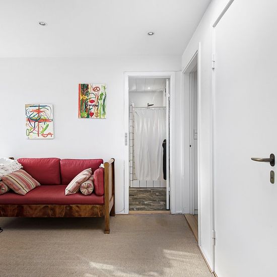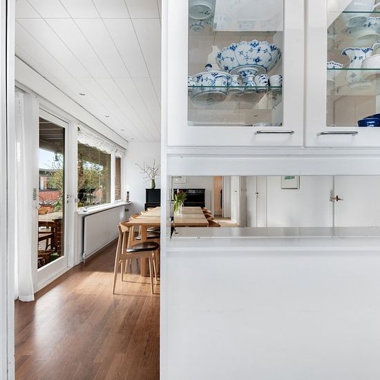 Lovely villa on one level plus basement, totaling 298 m2. Within walking distance to the beach, forest, and the castles of Charlottenlund and Bernstorffspark, this midcentury townhouse is nestled in the heart of a small neighborhood with cafes and boutiques, and is only a 12-minute train ride from the center of Copenhagen and international schools. The house is designed by the Danish architect Henrik Iversen and is located in a small compound with 12 other similar houses, each having a 60 m2 terrace in addition to a common park with a small ...