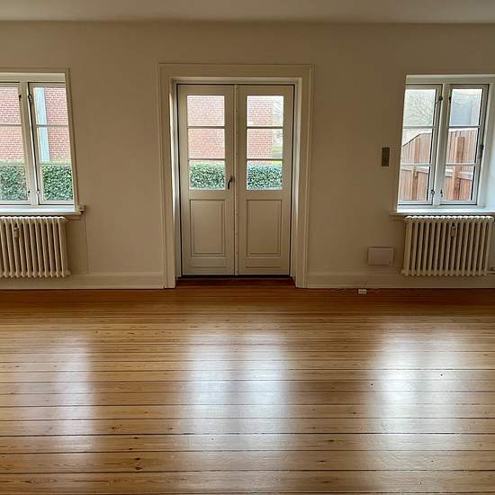 House in two levels, with garden. Contains: entrance hall, kitchen and two living rooms on the ground floor. 1st floor: bathroom and three bedrooms, one of which has a balcony. Basement/storage of approx. 60 cm. The house is centrally located in quiet surroundings, within walking distance of shops and public transport. The rent also includes, in addition to the above, an advance payment for electricity of DKK 900/month. The tenancy does not allow any kind of pets.