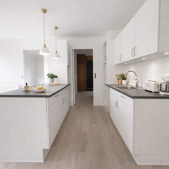 Well-laid-out and cozy villa of 130 sqm located in the quiet and family-friendly Dommerby. Here you get a home with a good floor plan and a lovely, enclosed garden with several useful outbuildings for both storage and a workshop. The home welcomes you via a nice and spacious entrance hall with plenty of storage space. The heart of the home is the newer kitchen, which appears modern and functional with all major appliances included, so the property is ready to move into. The house is a well-arranged five-room dwelling. You will find three goo...