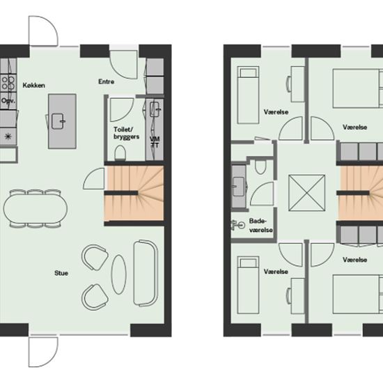 Description This inviting 5-room townhouse offers 114 square meters spread over two floors. From the entrance, which includes a toilet, you walk directly into the open kitchen-dining area, where there is room for the whole family in the stylish JKE kitchen with appliances from Siemens. In the living room, you have a glass door directly out to the garden, providing beautiful natural light and creating a seamless transition to the garden and the sunny terrace. Under the stairs to the first floor, there is a practical storage room, contribut...