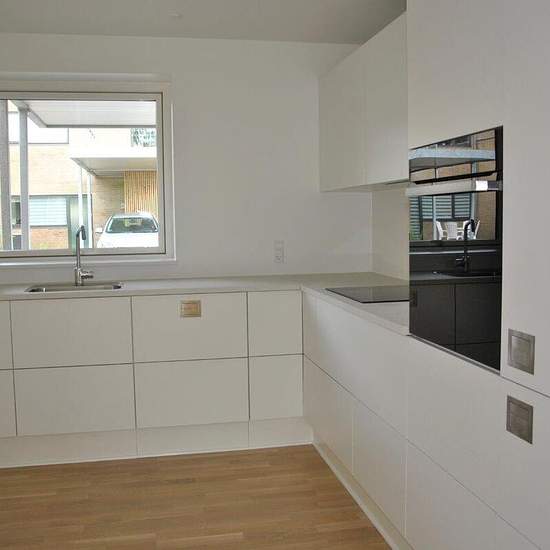 The two-storey terraced house is built with sound-dampening triple-glazed windows and doors as well as a Genvex ventilation system, which ensures a healthy and comfortable indoor climate. The home contains an entry hall, two bathrooms, an open-plan kitchen/dining/living room, four rooms, as well as a balcony facing east and a terrace facing southwest. The property appears sleek and modern and comes with all major appliances. It includes a private carport with a storage shed and a small private garden. Note: The pictures are from a comparable...