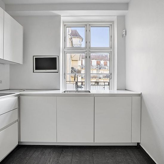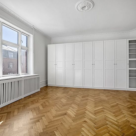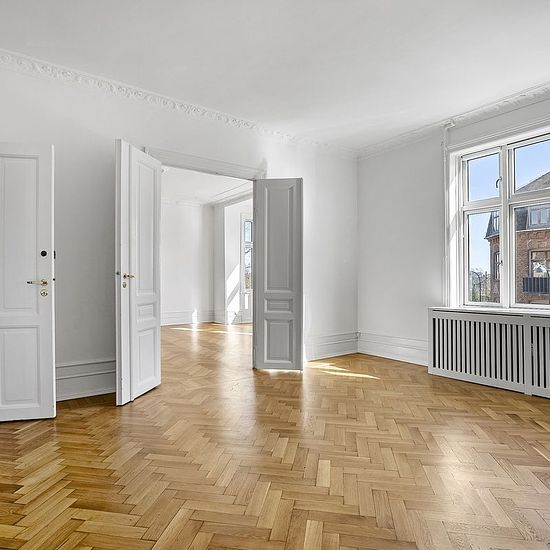 Magnificent manor apartment in Hellerup – 170 m² Do you dream of a spacious and elegant home with plenty of light and classic details? Then this beautiful manor apartment of 170 m² is something truly special. The apartment is located in a well-maintained building in an attractive area with a short walking distance to Hellerup Station and shopping opportunities along Strandvejen. The home offers an inviting entrance hall with a beautiful guest toilet. From here, you step into a bright and elegant corner living room with impressive natural lig...