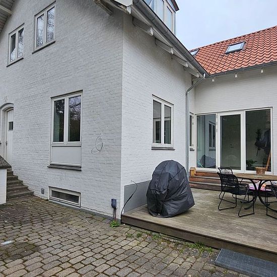 Spacious villa centrally located in Hellerup. Set back from Tuborgvej, you will find this classic villa with space for a large family. The villa is located in the rear part of the development, which also contains 2 additional apartments, but is separated. The villa, which has been continuously renovated, features 4 good bedrooms, 2 bathrooms, a large fireplace living room, a basement with the possibility for a home cinema and gym. Additionally, the extension offers the possibility to set up an office or an extra bedroom. Outside, summer e...