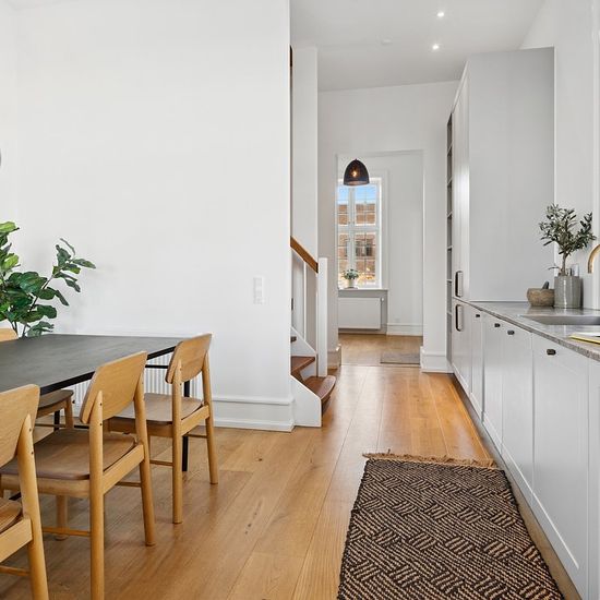 Description Welcome to this beautiful, historic property in Hellerup The bright and spacious townhouse in the old police headquarters on Kildegårdsvej offers a total of 196 well-utilized square meters, perfect for the modern family. With a large kitchen/dining area, a cozy living room, and four good bedrooms, there is space for both privacy and shared living. Two stylish bathrooms, a guest toilet, and a functional utility room provide both comfort and practicality in everyday life. The home appears fully renovated with classic details an...